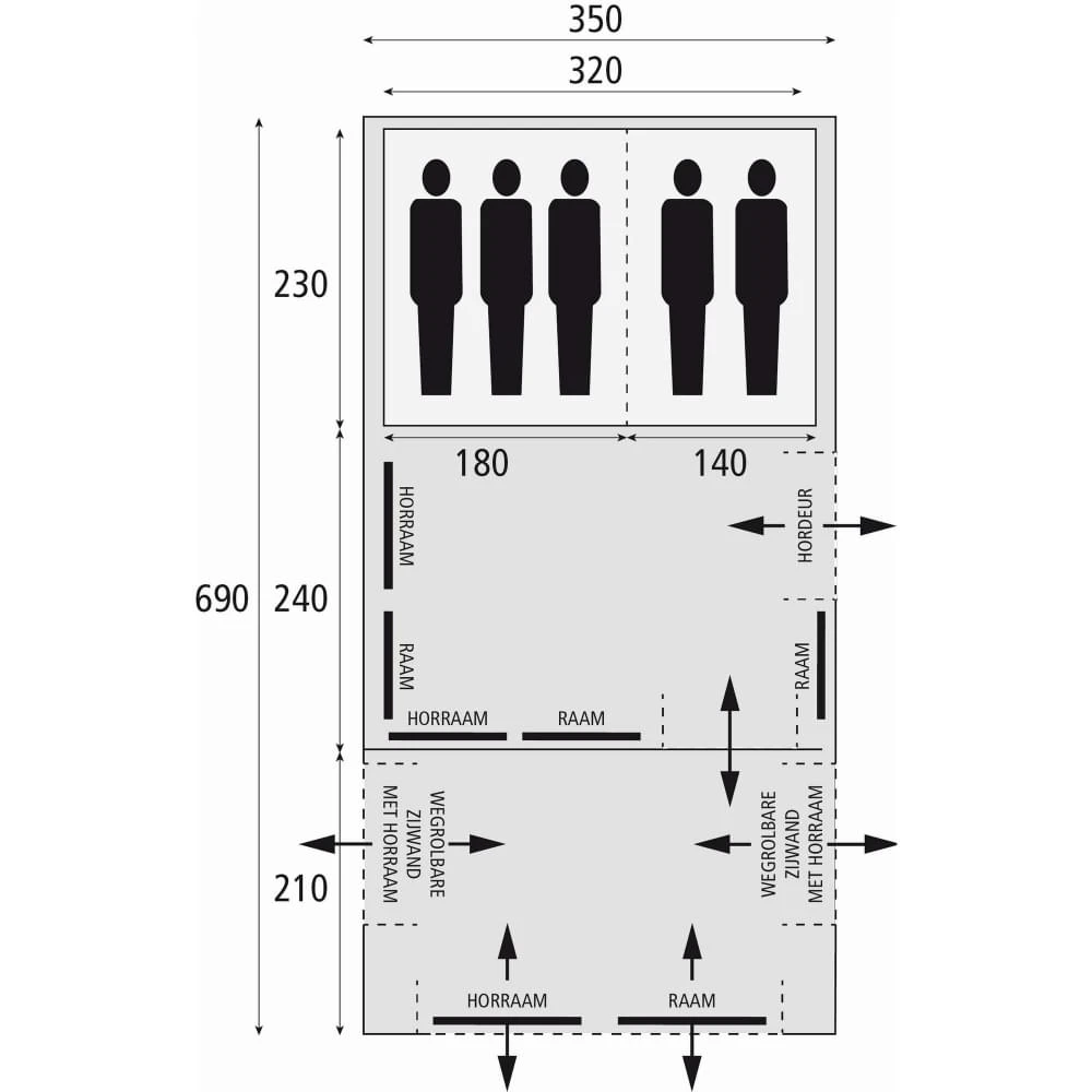 - Inclusief een grote tentluifel met wegrolbare zijwanden