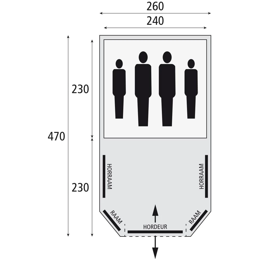 - Mogelijkheid tot extra luifel met meegeleverde tentstokken
