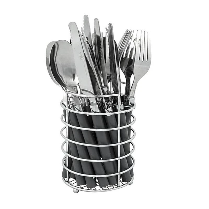 Bo-Camp Bestekset In Mandje Donkergrijs