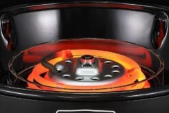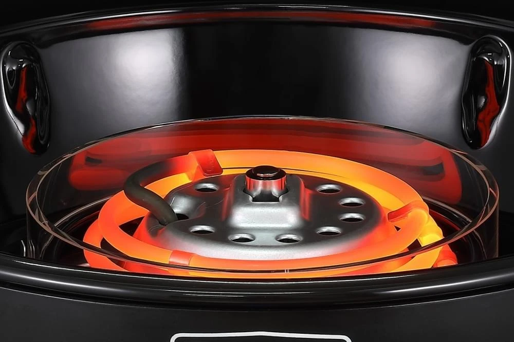 De temperatuur is door de Spot-on Grilling Technology exact in te stellen en constant op de gewenste temperatuur te houden. De temperatuur wordt namelijk rechtstreeks op het rooster gemeten in plaats van onder de deksel. Doordat je de temperatuur traploos in kunt stellen van 70 tot 270 graden is de E-Braai ook geschikt voor slow cooking. De temperatuur is af te lezen op het digitale display. Daarbij zorgen de 4 ventilatiegaten in de deksel voor een goede luchtcirculatie en gelijkmatige hittespreiding. En ben je klaar met barbecueen dan is deze elektrische barbecue makkelijk schoon te maken. De vetpan is uitneembaar, net als de glazen ring die de spiralen beschermt tegen het kookvet. Beiden kunnen gewoon in de vaatwasser.
