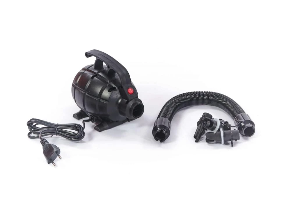 Deze granaatvormige elektrische hogedruk pomp van Campguru voorziet elk luchtbed, elk zwembad of elke zwemaccessoire binnen een razend tempo van lucht. Ook is het een uitstekende hulp bij het leeg laten lopen ervan. De krachtige pomp werkt op 230V dus hij kan gewoon in het stopcontact.