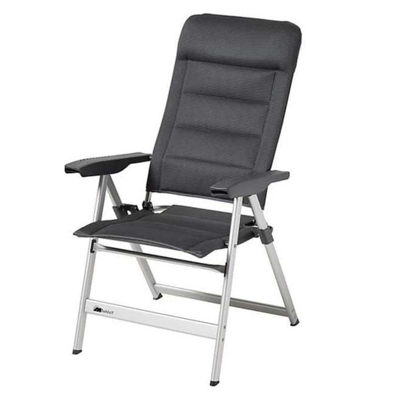 De Camperino campingstoel van Dukdalf is de kleinste kampeerstoel in deze serie. De rugleuning is net iets lager en de Camperino is net iets minder breed dan de doorsnee stoel. Dit maakt dat je nog steeds comfortable stoelen mee kan nemen op vakantie, ook als je iets minder ruimte hebt. Dankzij de verstelbare rugleuning met 10 standen kan je altijd wel een lekkere zithouding vinden. De standenstoel heeft een sterk aluminium frame en waterbestendige zachte bekleding.