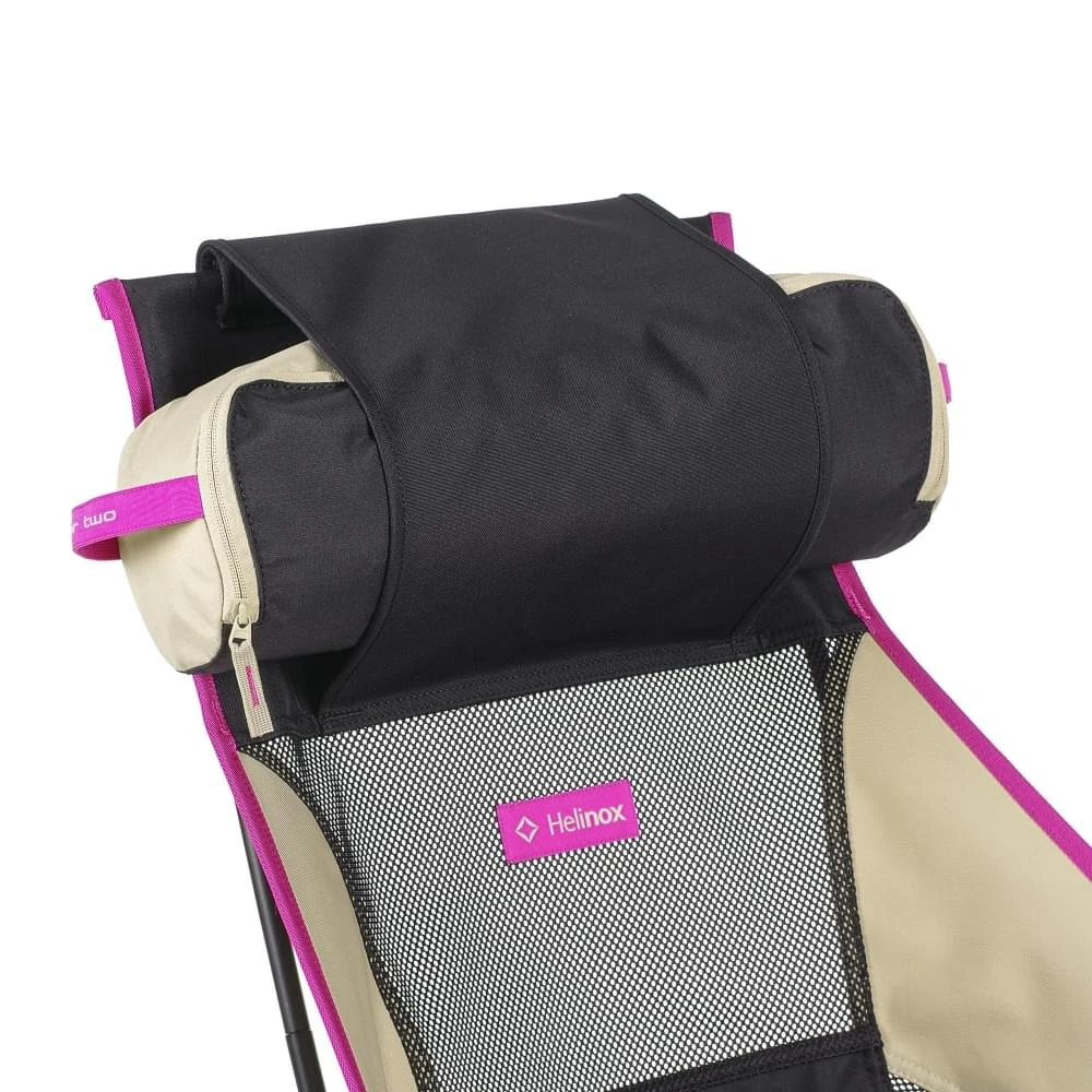 Voor een extra toevoeging van het comfort kan je het opbergzakje vullen met een kleding stuk om deze vervolgens aan de rugleuning van de Chair Two te fixeren in het handige hoofdsteun vak. Zo heb je altijd een zacht hoofdkussen bij de hand en verlies je deze ook minder snel.