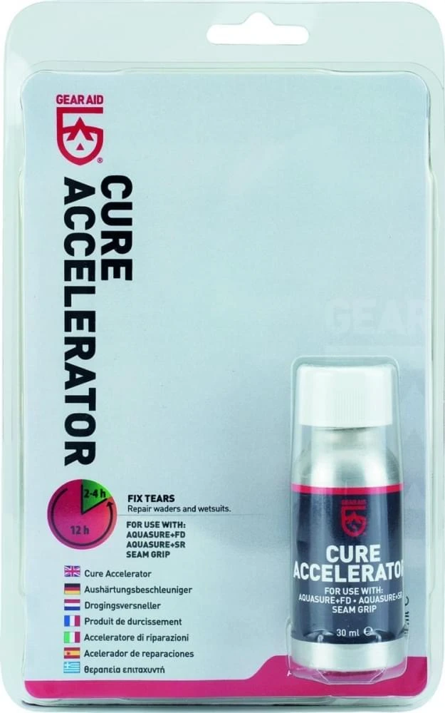 Je gebruikt Seam Grip om een reparatie aan één van je outdoor attributen te doen. En dit moet ook nog eens snel gebeuren….. Gebruik dan de Cure droogtijdversneller van McNett. Met deze versneller verkort je de volledige hardingstijd met 2 tot 4 uur.