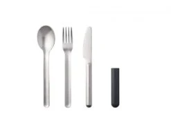 Bestekset Bloom van Mepal bestaat uit een vork, mes en lepel. Wordt inclusief een houder geleverd zodat je alles overzichtelijk kan opbergen en vervoeren. Gemaakt van RVS is de set vaatwasserbestendig en houd deze prettig vast.