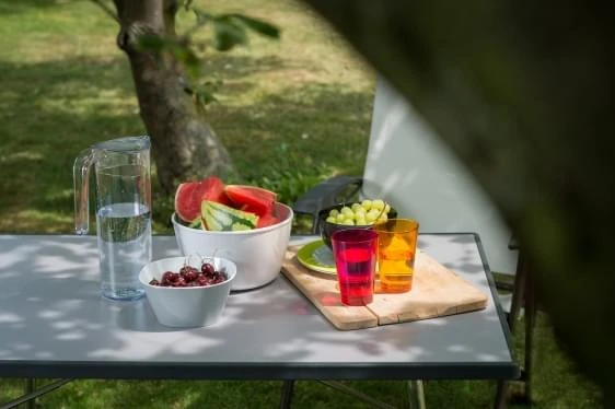 Glas Flow is een stijlvol glas, ideaal voor op de camping. Het glas is verkrijgbaar in meerdere kleuren en kan makkelijk op elkaar gestapeld worden. Het glas heeft een dikke bodem, inhoud van 275 ml en is gemaakt van kunststof dat geschikt is voor de vaatwasser.