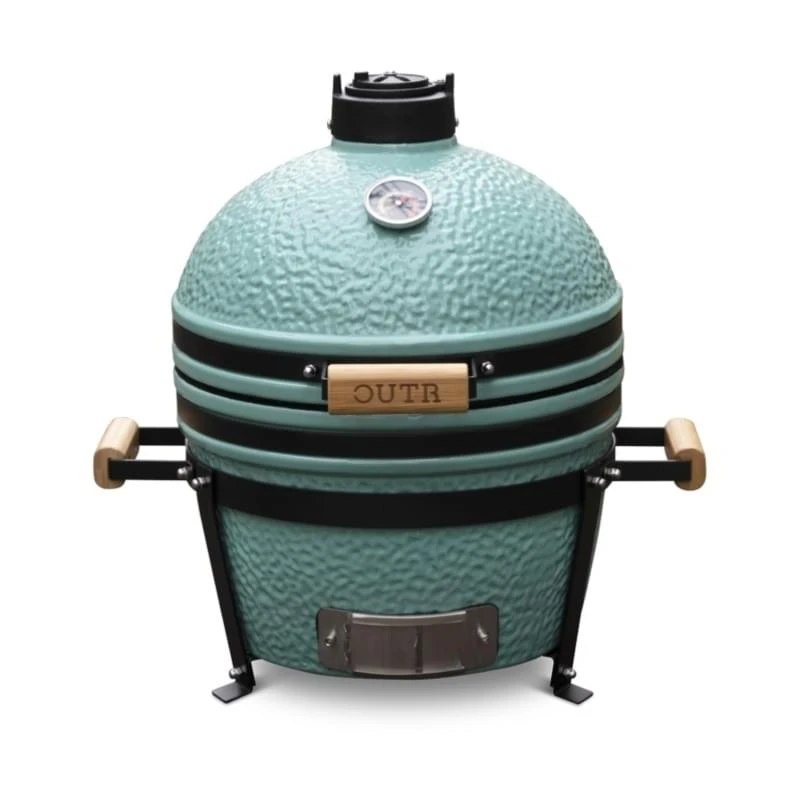 De eivormige BBQ komt uit Japan en China en is al duizenden jaren oud. In het Japans betekent Kamado kachel of fornuis. De Kamado Grill Medium 40 van Outr is een mint gekleurde en volledige barbecue. De binnenlaag van vuurvaste keramische materialen, zorgt ervoor dat de warmte in de BBQ op gelijke temperatuur blijft. De mooie glans die aan de buitenkant te zien is, is gemaakt van een sterke laag emaillen, dit is bestand tegen alle weersomstandigheden. De BBQ kan je gebruiken in alle 4 de seizoenen. Deze BBQ is in verschillende kleuren te verkrijgen.