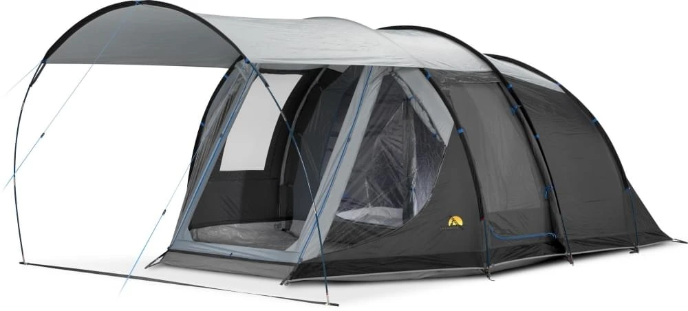 Er is bij deze tunneltent een grote luifel meegeleverd die middels een rits gemakkelijk vastgemaakt kan worden aan de voorkant. Er is een handig doorvoer-syteem voor een stroomkabel in de zijkant van de tent met ritssluiting gemaakt. Via de rechter zij-ingang kan de tunneltent worden benaderd en deze is voorzien van een horrengaasdeur. De ramen zijn voorzien van gordijnen die alles lekker donker maken.