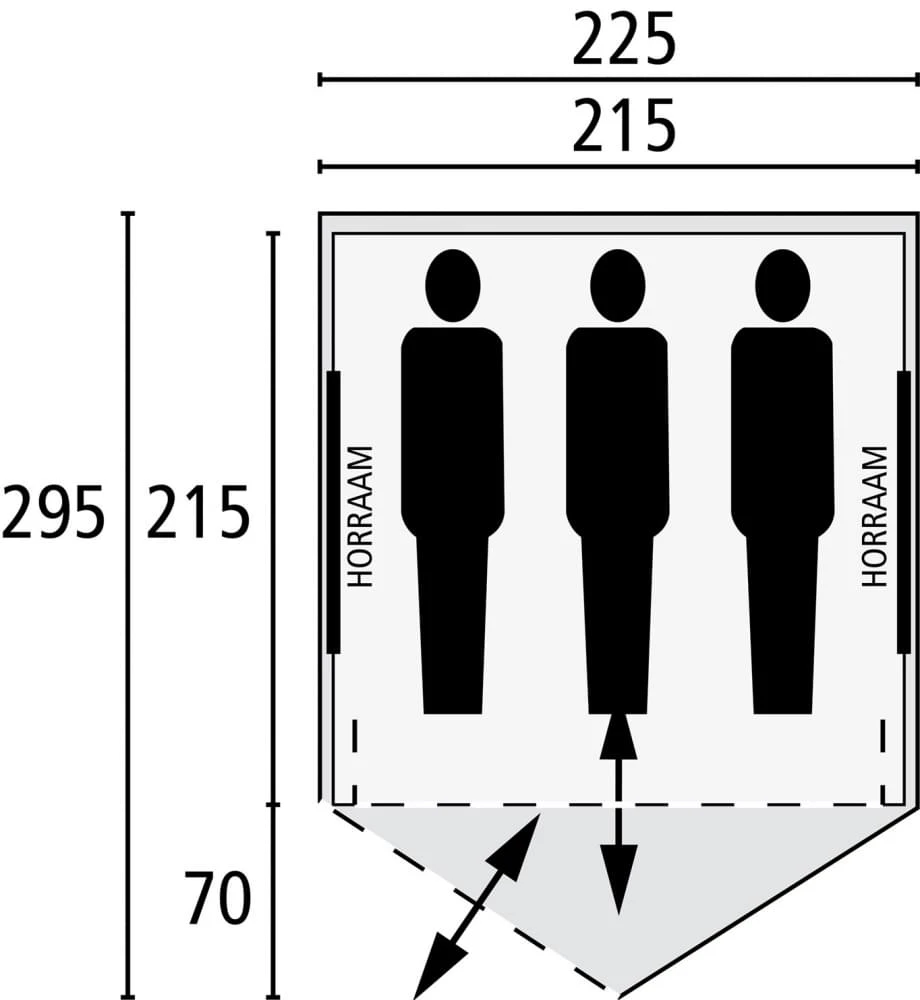 De binnentent van de Speed 3 is voorzien van een ventilerend polyamide en is rondom met horrengaas bekleed voor extra ventilatie. Op de buitentent is een PU coating aangebracht op het polyester die de tent regenbestendig maakt. Het voorste gedeelte loopt uit in een punt en hier kun je je bagage onder kwijt.