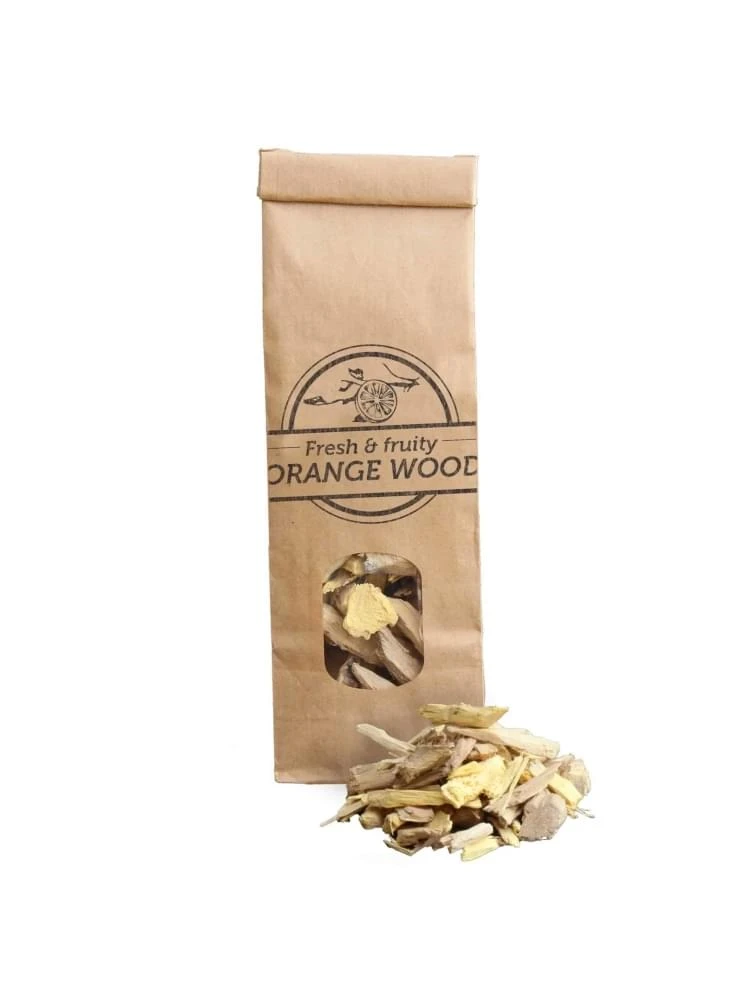 Gemaakt van geselecteerd natuurlijk sinaasappelhout. Kenmerkend voor dit hout is de goede rookontwikkeling. De rook verfijnt de te roken levensmiddelen met haar fruitige, frisse smaak van sinaasappelhout