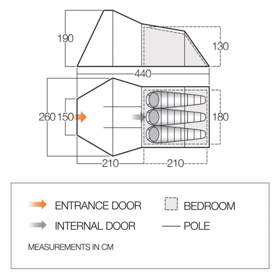 De Vango Galaxy 300 heeft een unieke vorm. Het slaapgedeelte is laag en het voorportaal is juist extra hoog. Het hoge leefgedeelte heeft een stahoogte van maar liefst 1.90 meter en is op z’n breedst 2.60 meter. Op deze manier benut je alle centimeters zonder dat er veel extra gewicht is toegevoegd, hij weegt namelijk maar 5,55 kg. Dit is een 3 persoons tunneltent met een fijne slaapcabine en een enorme berg aan ruimte voor je bagage of om gewoon lekker te kunnen eten en schuilen tijdens een zomerse regenstorm. Voor een droge en schone opbergplek kan je bij de ingang een verhoogd grondzeil aanhaken. Door de Diamond Clear ramen en het Diamond Clear Skylight heb je ook nog eens een mooie lichtinval en goed uitzicht naar buiten.