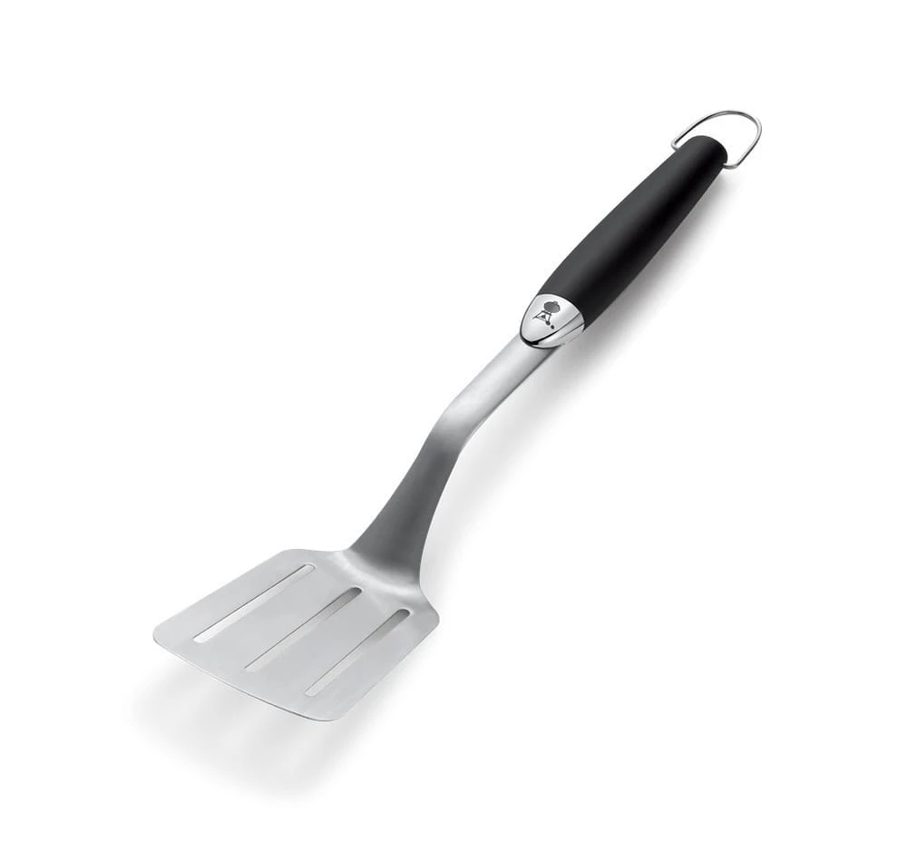 Met de Premium Barbecuespatel van Weber kan je elke grilluitdaging aan. Door de gehoekte vorm kan je met de spatel tot ver over de rand van de Weber barbecues reiken en blijft je hand ver weg van de vlammen en de hitte. De soft-touch handgreep zorgt voor een stevige grip waardoor je eenvoudig je vis en burgers omdraait.