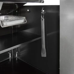 In de ene zijtafel vind je een roestvast stalen zijbrander met elektronische ontsteking. Hier kan je alle gerechten op bereiden waarbij je een gewone gaspit voor wil gebruiken, en natuurlijk ook handig voor de satésaus. De zijbrander heeft een eigen bedieningsknop en is van gepolijst metaal gemaakt. De andere zijtafel van de Weber EX-335 is heeft een extra groot werkblad zodat je geen ruimte tekort zal komen als je bezig bent met het voorbereiden van je kooksessie. Aan beide zijtafels zitten bevestigingshaken om je gereedschap aan op te hangen. Mocht je de zijtafel niet nodig hebben dan kan je deze makkelijk inklappen zodat hij niet in de weg kan zitten.