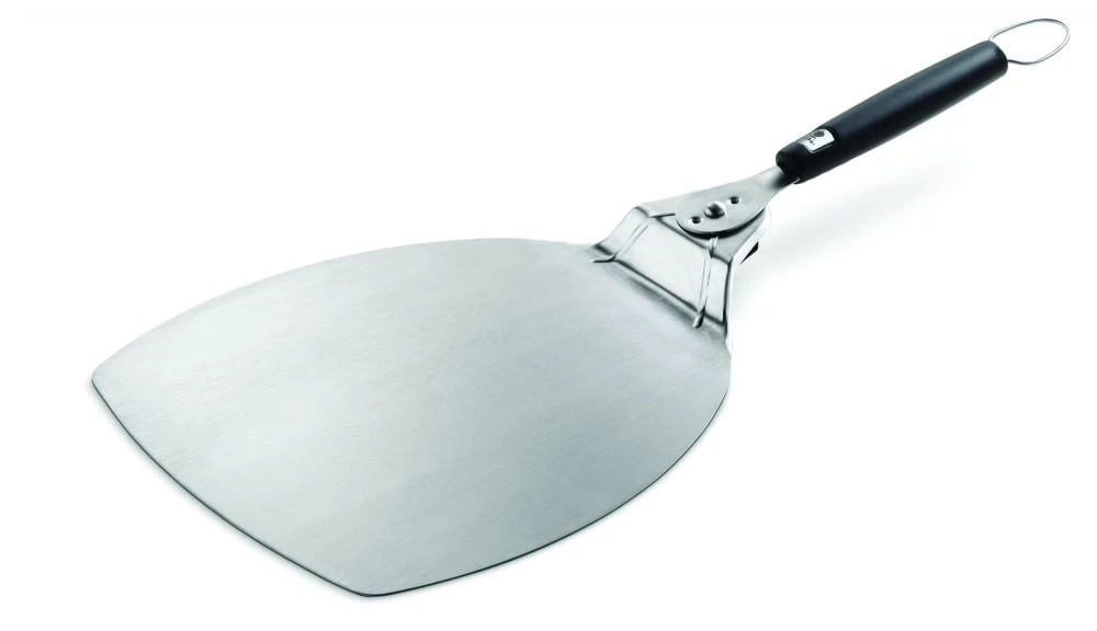 De Weber Pizzaspatel is een nieuw barbecue accessoire speciaal voor het bakken van pizza op de pizzasteen of in de pizzaoven van Weber. De spatel heeft een opklapfunctie zodat hij niet teveel ruimte inneemt. Dankzij de spatel kan je de pizza makkelijk in en uit de oven halen. Hij is gemaakt van roestvrij staal en het handvat heeft een softcoating voor een goede grip.