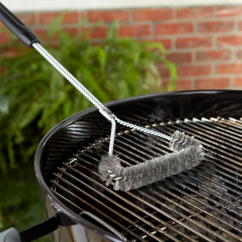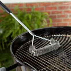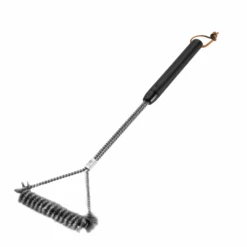 De Driezijdige Reinigingsborstel van Weber is een geschikte tool om roosters en moeilijk bereikbare plekken mee te reinigen. Ook de zijkant van het kookoppervlak kan met deze borstel gereinigd worden, want het porselein emaillen wordt door de duurzame roestvrij edelstalen borstelharen niet aangetast. De handgreep is van kunststof.