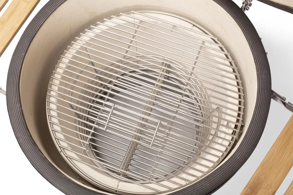 Alle rvs-materialen die zijn gebruikt zijn van het type 304, dit staal is de beste keuze als het gaat om hittebestendigheid. Zo wordt het model wordt standaard geleverd met RVS grillrooster, kolenmand en vuurschalen kolenmand met kolen scheider. De afsluiting is gemaakt van Fiberglass en is onbrandbaar maar zorgt wel voor een optimale afsluiting. Het rooster heeft een diameter van wel 49 centimeter wat geschikt is voor 6 tot 8 personen.
